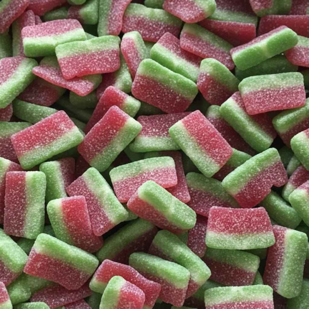 Ingrédients : Sucre, Sirop de glucose, eau, amidon de maïs, gélatine de boeuf halal, acidifiants : acide citrique, acide malique, arômes, régulateur d'acidité : citrate de sodium, colorant E133. Bonbon halal / Bonbons halals